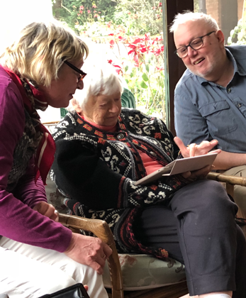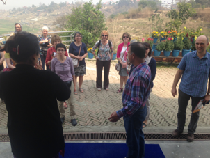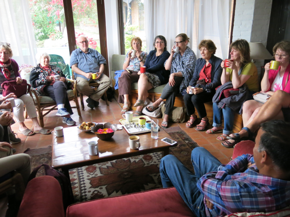 Som Paneru bescherte uns anschließend noch eine besondere Überraschung. Spontan ließ er die unwissende Gruppe zum Privathaus von Olga Murray, der 92jährigen Gründerin und Ehrenpräsidentin der NYF fahren, die uns alle (15 Personen) hocherfreut und bestens gelaunt zum Tee empfing. Sie hat uns mit ihrer Präsenz, ihrer Energie, ihrem Engagement und ihrer Unkompliziertheit sehr beeindruckt und einen bleibenden Eindruck bei uns allen hinterlassen.