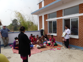 Nach seinen einführenden Worten stellte uns Som Paneru die Leiterin der beiden Zentren, Sunita Rimal, vor. Sie schilderte fachkundig und anschaulich die Vorgehensweise, wie die unter- bzw. fehlernährten Kinder im Ernährungszentrum innerhalb weniger Wochen gesundheitlich stabilisiert werden und wie ihre Mütter darin geschult werden , ihre Kinder langfristig mit den ihnen zur Verfügung stehenden lokalen Lebensmitteln gesund zu ernähren. Wir erfuhren, dass es aktuell 29 dieser Zentren über ganz Nepal verteilt gibt.