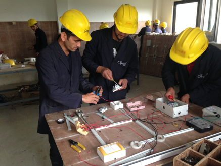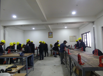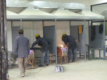 Er berichtete, dass junge Männer und Frauen ab 16 Jahre theoretisch und praktisch in den vier Berufen Elektriker, Installateur, Schweißer und Schreiner/Drechsler in jeweils 3-monatigen Lehrgängen qualifiziert werden. Während unseres Rundgangs waren die Schulräume und die Werkstätten komplett mit jeweils 15-20 Auszubildenden belegt.