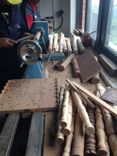 Bemerkenswert war für uns, dass zusätzlich zu der Ausbildung im Rahmen eines Projektes für Frauen, eine Auftragsproduktion von gedrechselten Schalen, Döschen, Massagerollen sowie die Fertigung von Holzbrettern und -löffeln in kleiner Stückzahl stattfindet.