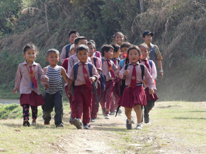 Am nächsten Tag fuhren wir in Richtung Olgapuri (bedeutet: Olgas kleine Oase). Wir konnten ganz in der Nähe zunächst den Rohbau eines Schulgebäudes besichtigen, das nach Fertigstellung an die nepalesische Regierung übergeben werden soll.